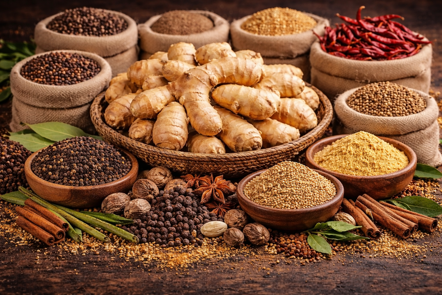 We export premium quality Indian spices, millets, rice, dals, jaggery, tea, coffee, oils, and other agro products with assured quality for global markets.